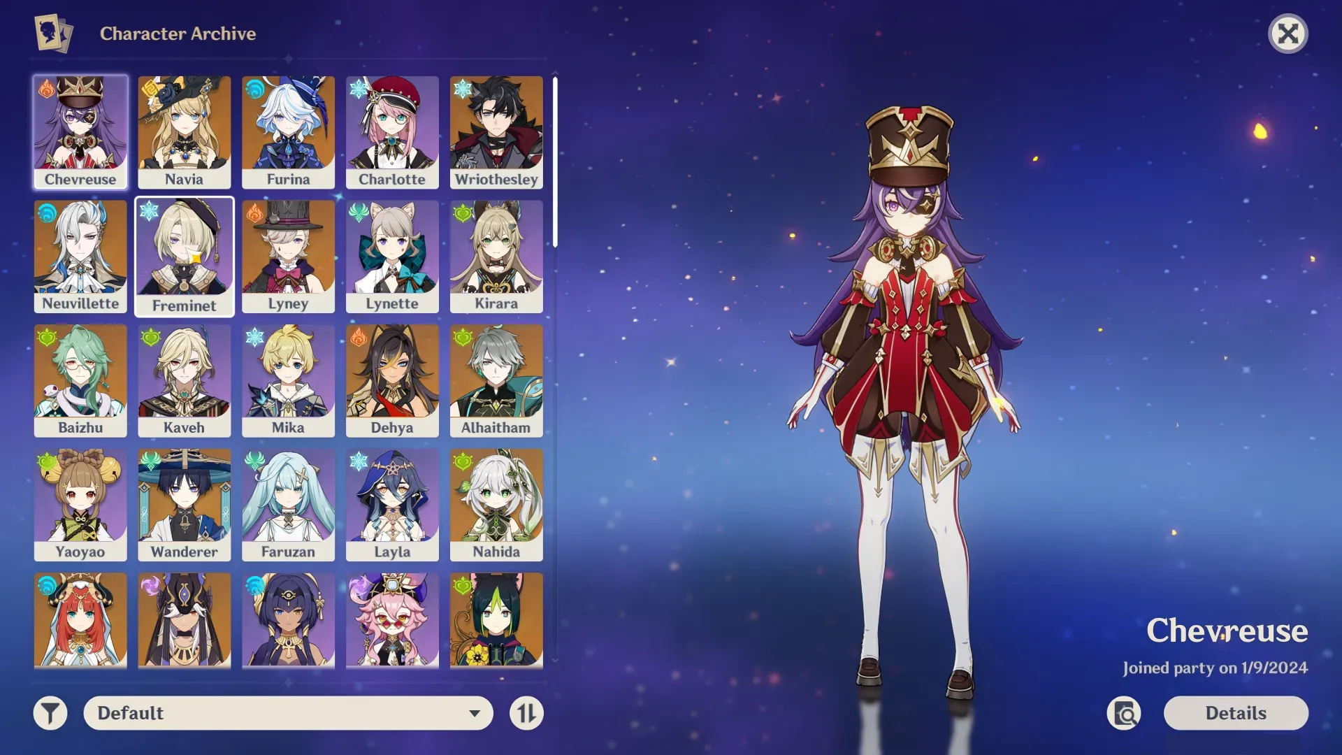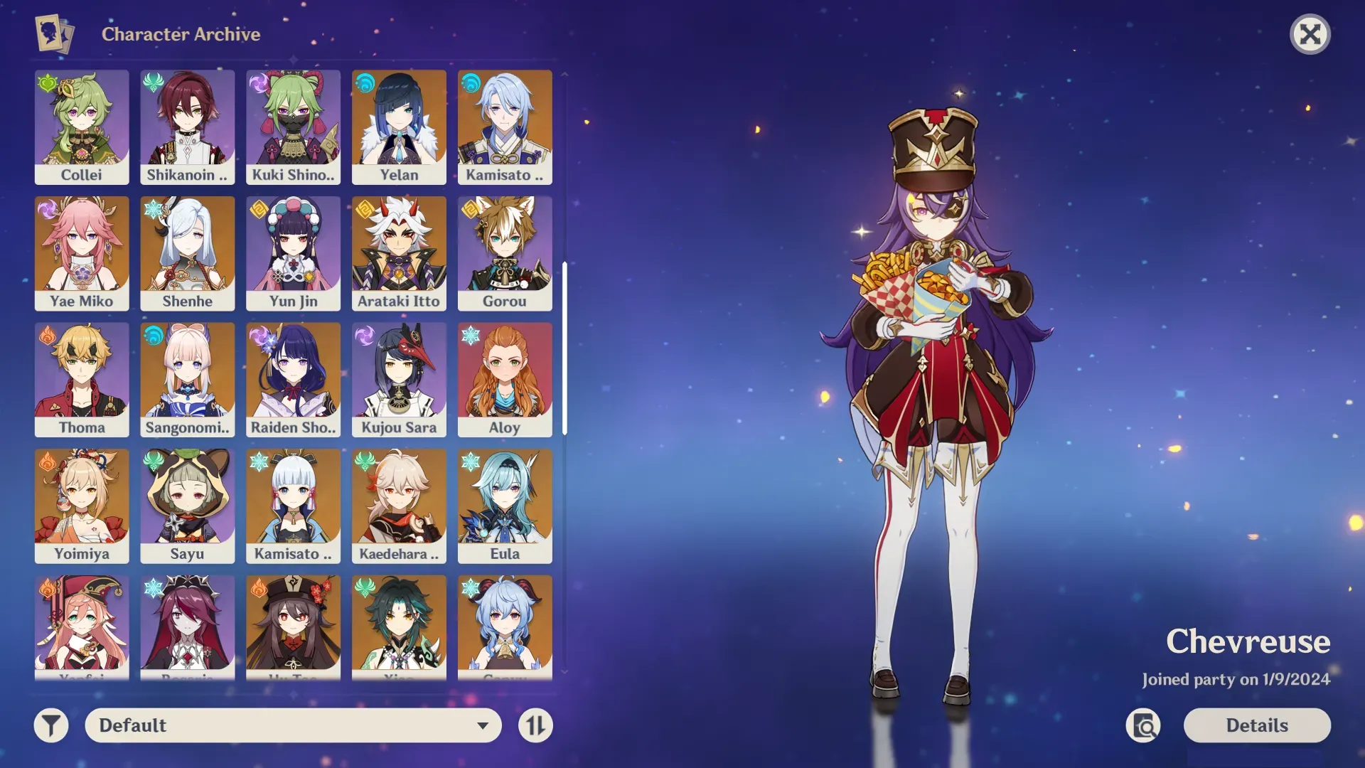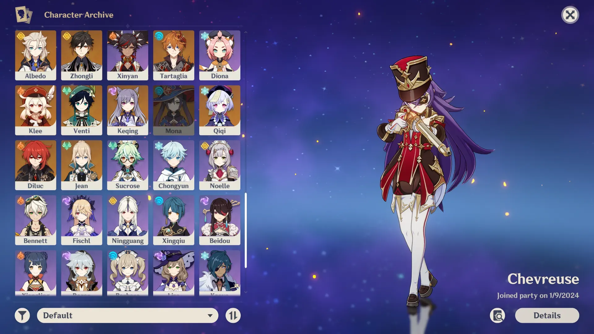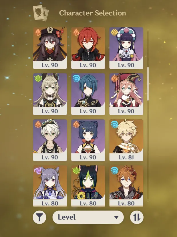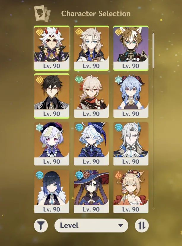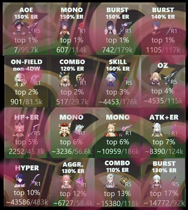 7 (itto c3, ganyu c1, yelan c1, mona c4, tighnari c2, qiqi c2, jean c1)